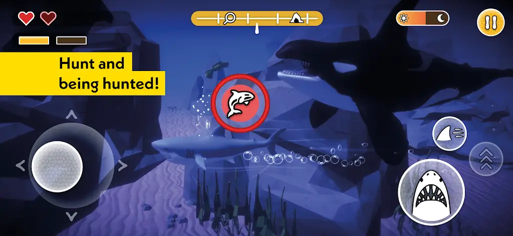 面临狩猎与生存挑战,战略性捕猎猎物,保持警觉避免失去生命值,利用鲨鱼技能穿越攻击区域,战胜强大掠食者。