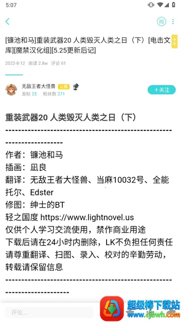 2. 社区驱动深度互动:每条目下设有专属讨论区,支持章节段落实时批注与书友回复。翻译组作者常驻社区答疑,读者可参与translation投票与意见反馈。社区氛围活跃,人均停留时长超45分钟,形成内容生产-消费-讨论的闭环生态。