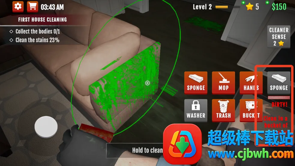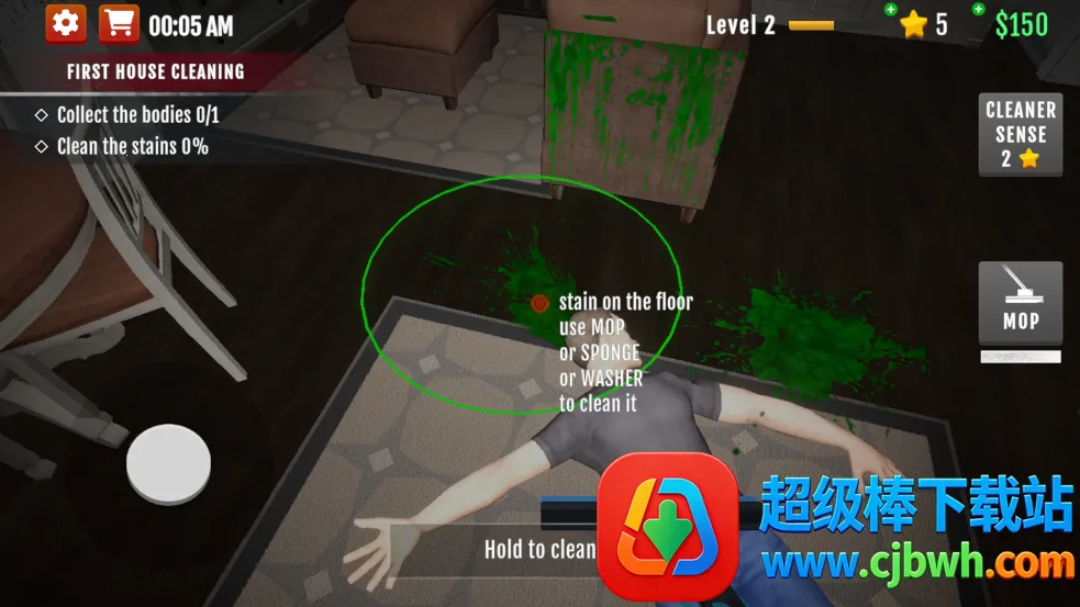 它能让你体验处理犯罪后果的独特过程,还得巧妙避开警察追捕。游戏特色满满,有多种清洁工具,像拖把、海绵、高压清洗机等,能应对各种脏乱场景。装备还可升级,提升清洁力。