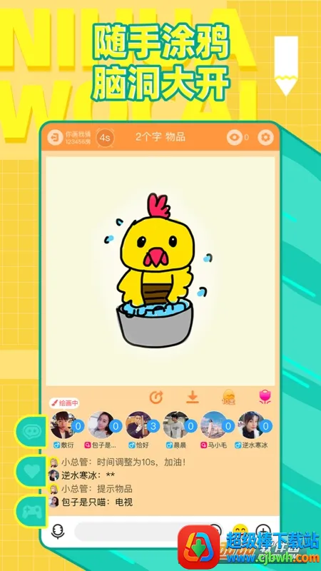 你画我猜是一款超有趣的多人在线小游戏app。它玩法多样,能满足你不同的娱乐需求。这里有多种游戏模式,比如低声模式,考验创造力和反应力;大逃杀模式,与众多玩家对决超刺激;还有机器人模式,可挑战高级机器人GU-355。你能从5种模式中任选,自定义词汇列表和游戏修饰,玩法永远不重样。它能让你和朋友尽情享受绘画与猜测的乐趣,在欢笑中增进感情。而且支持主持私人房间、加入公共大厅,还与桌面PC玩家完全兼容跨平台。界面清新,操作简单,拿起画笔就能和小伙伴们开启绘画冒险。不管是聚会还是独自休闲,它都能给你带来无尽欢乐,没有隐藏费用,免费就能畅玩。快来下载,让快乐派对触手可及,一起体验你画我猜的魅力吧!
