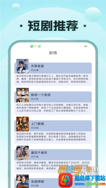 海量短剧资源:疯马短剧整合了网络上各种类型的优质短剧,涵盖喜剧、悬疑、爱情等多种类型,分类详细,让用户轻松找到感兴趣的剧集。