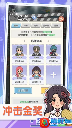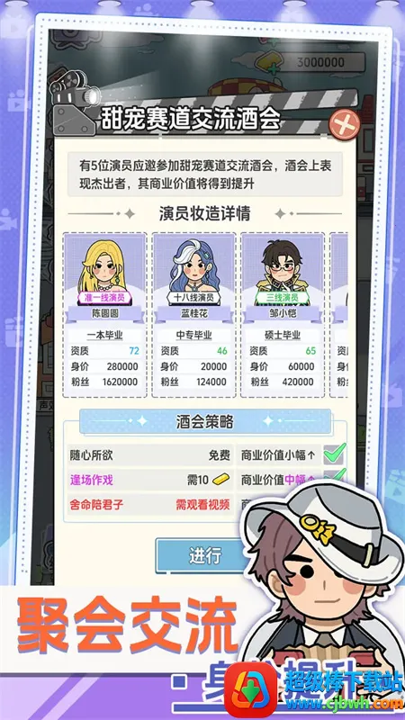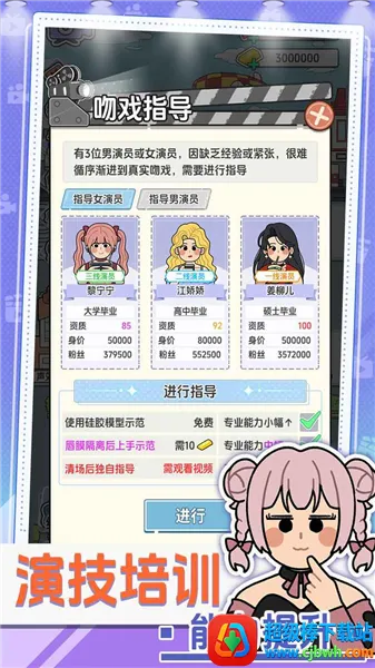 2、演员个性养成:演员有独特性格属性,通过多维度培训提升能力,维护好感度防止罢演或被挖角。