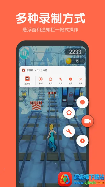 支持多种方式控制录屏,开始、结束轻松操作,还支持悬浮窗、通知栏等多种控制方式。