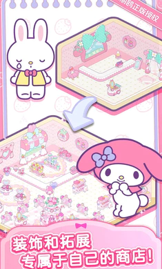 在这里,你可以和HelloKitty、库洛米等可爱的三丽鸥伙伴携手合作。通过轻松的合成游戏,一步步让原本荒废的购物城重焕生机,成为充满梦想的闪耀空间。大家齐心协力,打造出独一无二的专属购物城,找回曾经的欢声笑语,让购物城再次成为承载梦想的地方。只要与伙伴们一起,就能实现这些看似不可能的改变,开启一段充满乐趣与成就的建造之旅。