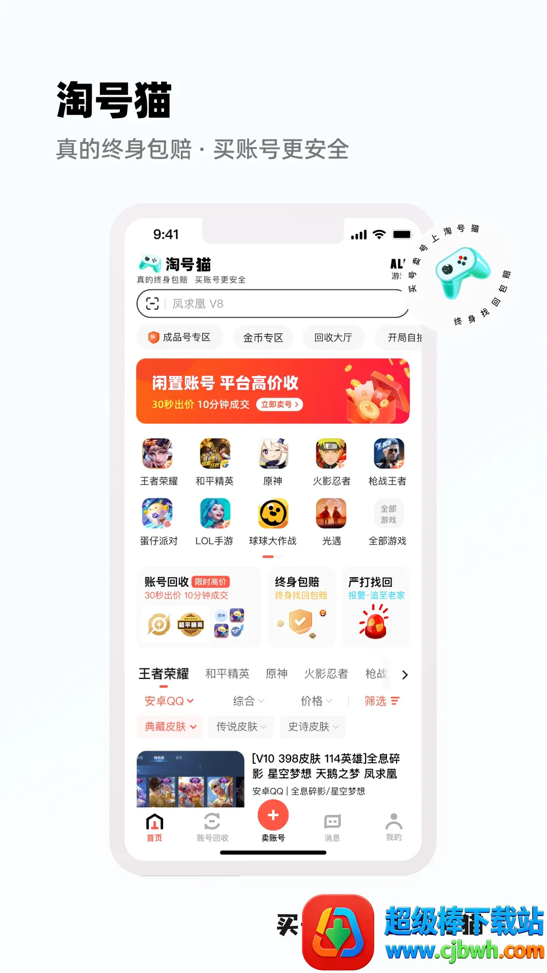 淘号猫2026官方正版是一款自由游戏账号交易app,有丰富多样游戏选择,各等级账号齐全。具备多种交易模式,搜索便捷,能估价账号、保障交易,登号器一键登陆,提供租号、卖号、买号及账号回收等服务。
