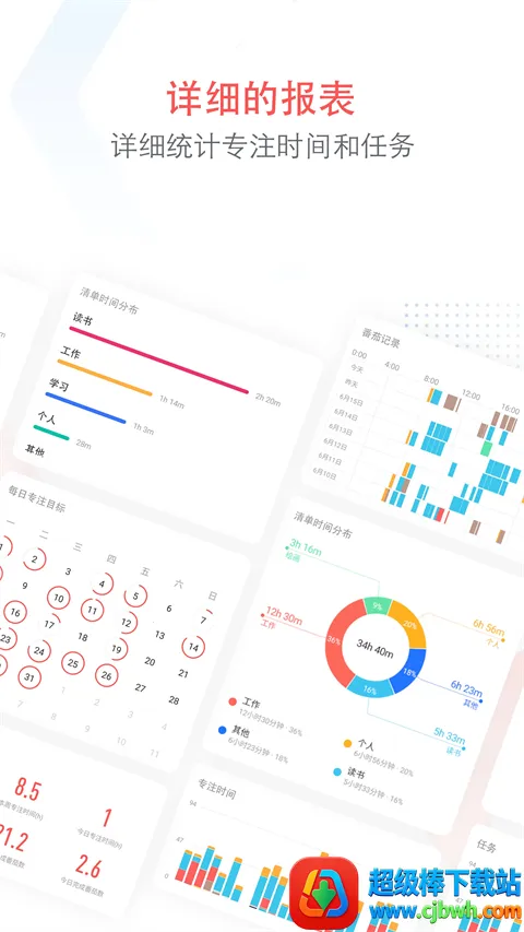 4. 报表功能实用:可记录成长历程,统计番茄专注时间、数量及任务完成情况等,方便分析总结。