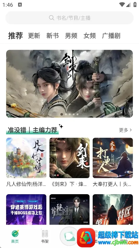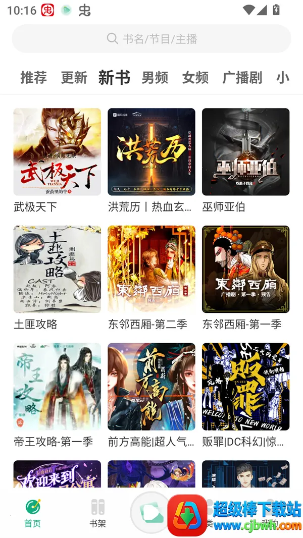 分类清晰:主页面涵盖各种类型有声内容,推荐、更新、新书等分区明确,让用户轻松找到心仪作品。