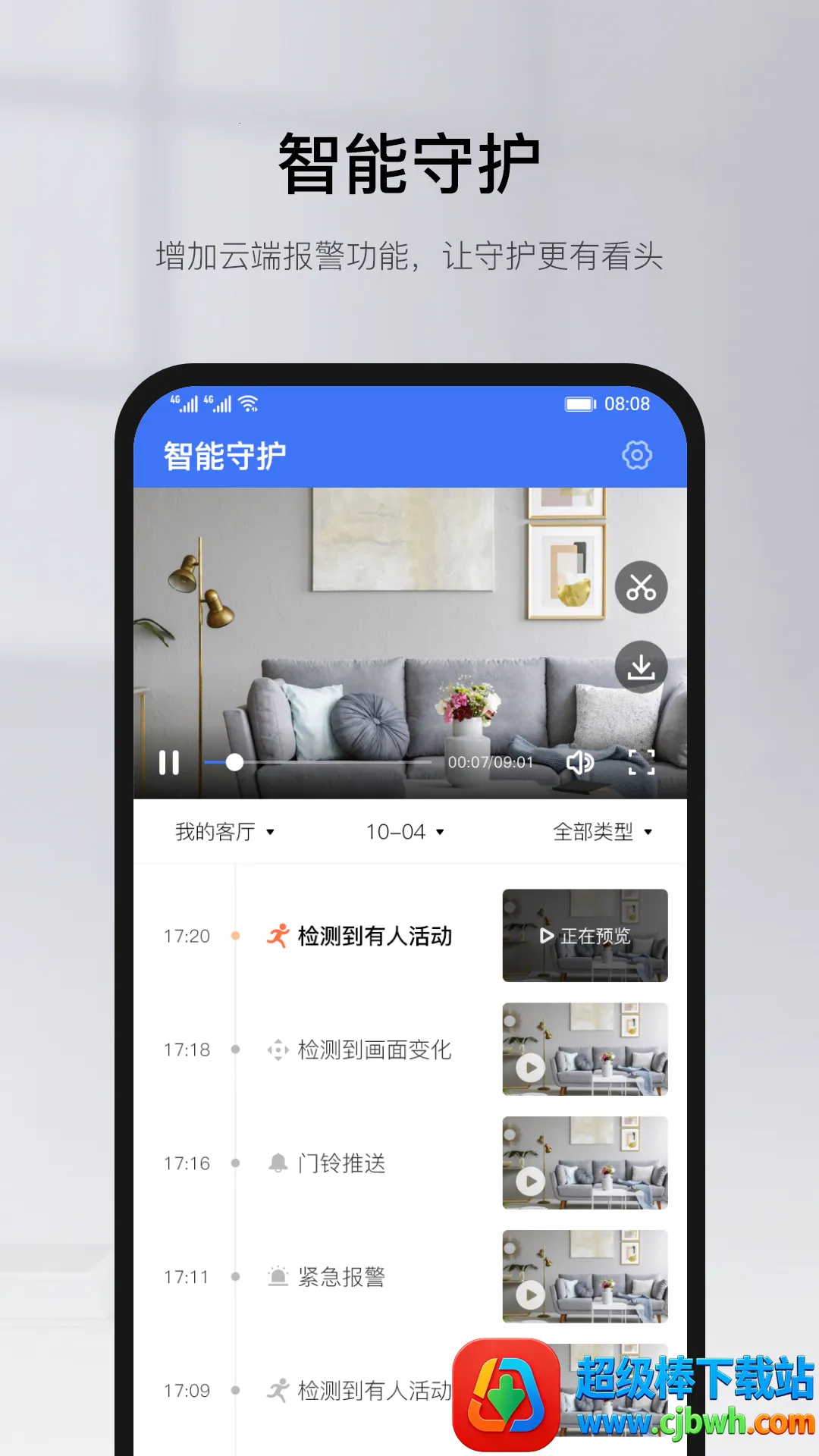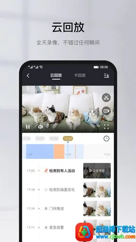 3、历史录像随时查看:支持TF卡或云端录像存储,随时随地能记录关键镜头、收藏精彩瞬间,还可回放摄像头内存卡底下的所有录像文件。