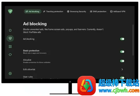 4. **支持自定义**:用户能控制过滤过程,添加自定义规则阻止广告或隐藏页面元素,还可将网站添加到白名单,支持整个域或特定页面,无需每次访问信任网站时关闭AdGuard。