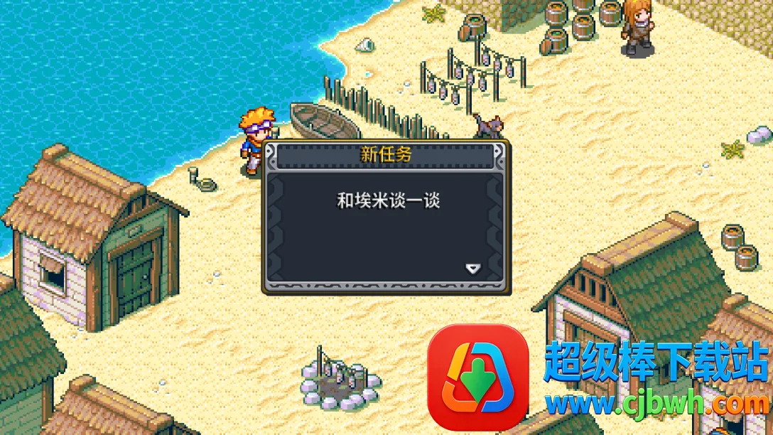 4、正式进入游戏以后,爷爷会交给角色一个任务,那就是去海边修筑围墙,并带上埃米,因此会获得一个新任务;