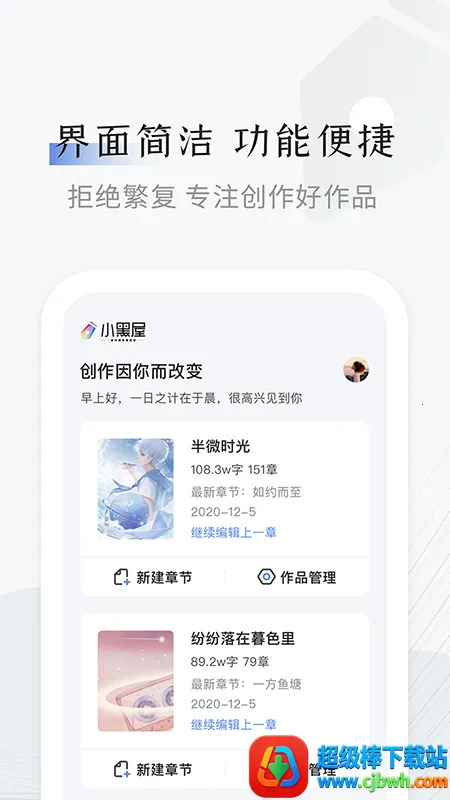 1. 界面简洁:布局化繁为简,精致入微,让作家专注创作好内容。