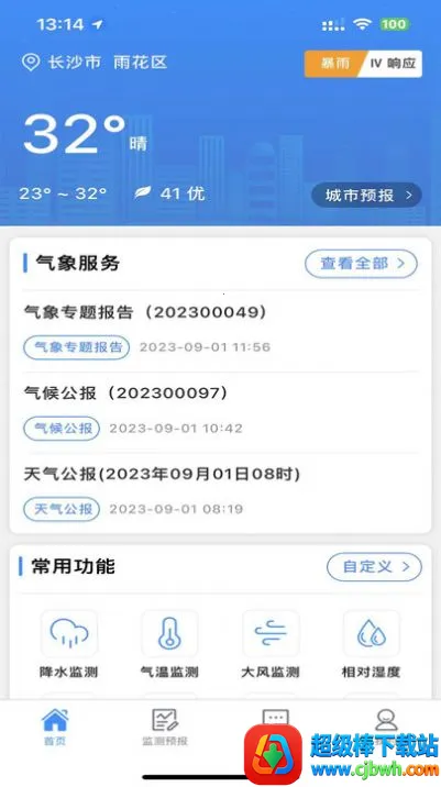 提供丰富的气象数据,包括实时气温、降雨概率、紫外线指数等,还能查看气象服务中心气象视频产品和科普视频,以及展示湖南省境内所有旅游景区天气预报等。