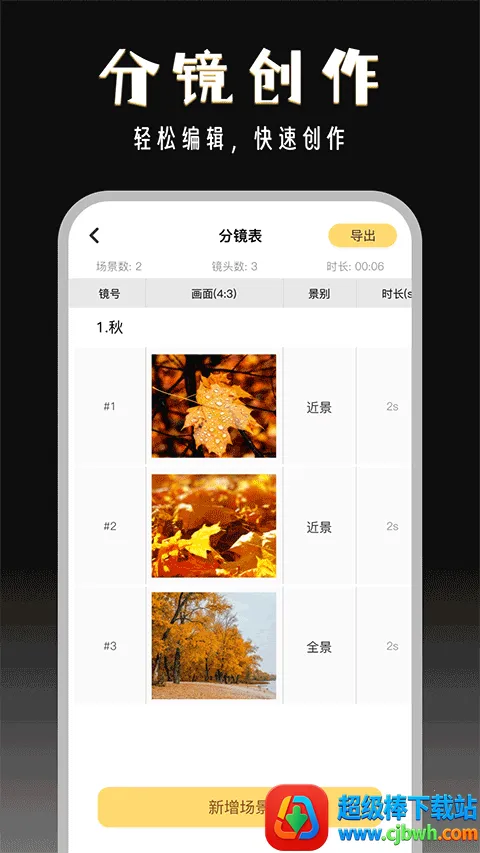 闪电分镜是一款超棒的视频创作应用,能让你随时在线编辑视频。它支持视频与图片拼接,还能多倍率调整播放速度,有丰富转场效果。其功能超强大,提供视频拍摄编辑和后期处理全套功能,在一个界面就能完成从构思到发布的所有步骤,大大简化创作过程,让创作者高效实现想法。界面极简,新手也能快速入门。除基本编辑功能,还有丰富特效滤镜和转场样式可自由搭配。使用时,打开应用点击首页分镜创作区域,导入视频文件,点击新增场景按钮就能增加新场景,进入详细编辑界面可对视频各方面进行编辑,完成后一键导出。它有多种剪辑工具和特效,拍摄界面直观强大,创作后能快速导出高质量视频保存或分享。多款转场特效让视频过渡自然,还能自由选风格,支持高清和超高清录制,为创作奠定基础。