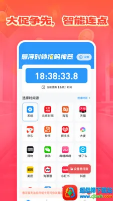 这款软件功能实用,能悬浮于电商界面,让您随时查看时间。在您抢购商品时,它能精准提醒,助您轻松买到心仪产品。其内存小不影响手机,适配众多电商软件,为您的抢购提供有力保障,且安全不泄露隐私,是抢购商品的得力助手。