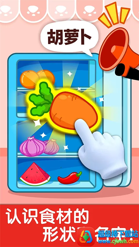 3、认知丰富:涵盖切菜、炒菜、调味、榨汁等环节,可认知水果蔬菜、肉类、厨房用具及美食制作步骤等。