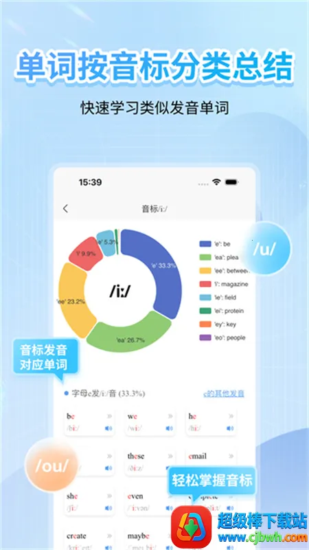 如果你想从零开始学英语音标,那这款软件绝对是你的不二之选!它涵盖了各种音标发音,每个发音都超准确,还提供录音对比,让你能及时纠正。发音方法和口型图清晰展示,配合常见词汇举例,帮你精准掌握发音。软件特色满满,支持英音美音切换,教学视频详细讲解发音技巧、重点及易错点。自然拼读有完整的音标和字母组合对照表,单词按音标分类总结,方便快速学习类似发音单词。跟读打分精确到每个原子音标,能有效纠音。速记单词用自然拼读法,效率加倍。优势也很突出,有短句跟读对比练习,随时随地训练。从零基础到进阶,能快速帮你攻克发音障碍,让你轻松学好音标,打好英语基础,赶紧下载开启你的音标学习之旅吧!