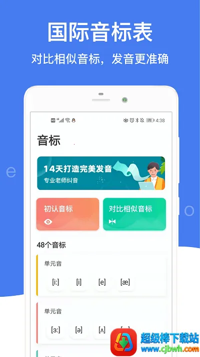 - 提供48个英语音标的朗读发音,每个音标发音准确清晰,助您打好英语发音基础。