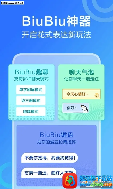4. 多样特色功能:提供丰富的键盘皮肤、表情包、颜文字等。有BiuBiu键盘和BiuBiu趣聊,满足不同社交需求。支持拍照输入,运用OCR技术快速识别文字。还有剪切板可保存多达100条复制内容,提供丰富祝福语和花样视频模板等。