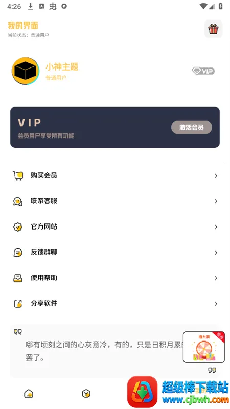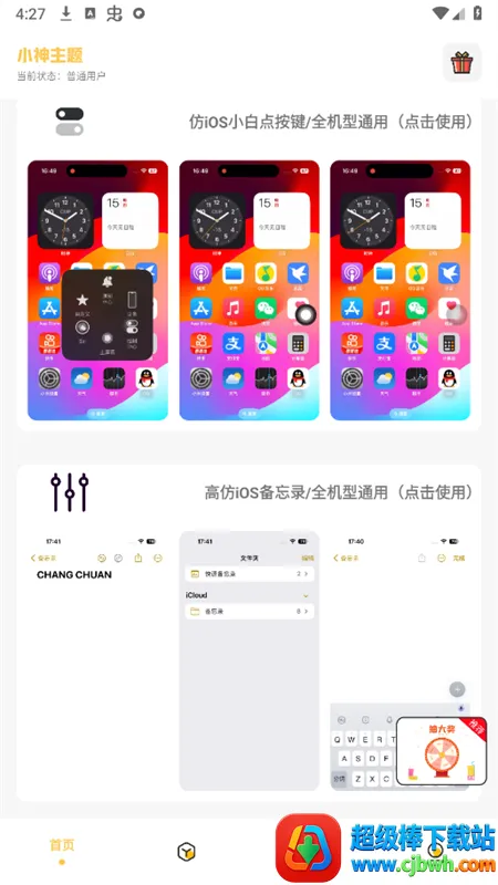 小神主题是一款超棒的安卓主题美化应用!它能满足你对手机个性化的所有需求。这里有海量免费主题实时更新,让你的手机桌面永远不单调。它专为安卓设计了iOS主题启动器,一键就能切换到iOS界面,轻松呈现iOS风格桌面视觉效果。界面简洁无广告,操作超顺畅。能自由切换各类主题,自定义桌面图标、字体和颜色,打造专属风格。还配备灵动岛功能与多样小组件,强化桌面交互体验。支持状态栏自定义,修改桌面图标与布局。兼容多款安卓机型,主题内容实时更新。不管是想仿iOS灵动岛、控制面板,还是用各种个性化主题,它都能做到。通过简单步骤完成答题任务,就能永久免费享用所选主题及对应功能,轻松把手机界面改成自己喜欢的样子,快来试试吧!