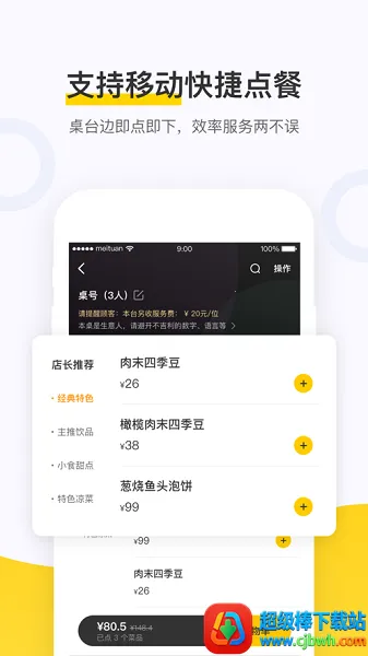 美团点餐助手是备受广大餐厅主和顾客喜爱的智能点餐软件。它界面友好,操作便捷,以全面的服务功能著称,成为连接消费者与美食体验的桥梁。其简化了点餐流程,无需纸质菜单,就能快速下单,让顾客更好地享受美食体验。无论是餐厅主还是顾客,都能借助它提升效率,收获便利。它在点餐领域表现出色,为餐饮行业带来了积极影响,是一款值得称赞的智能点餐软件,助力打造更优质的用餐环境与服务。