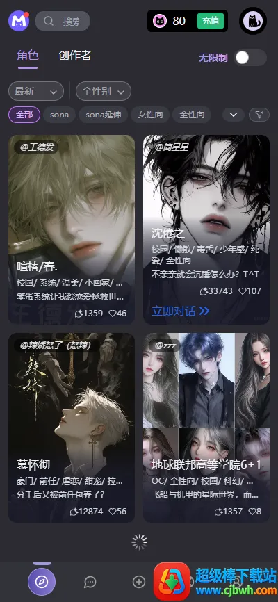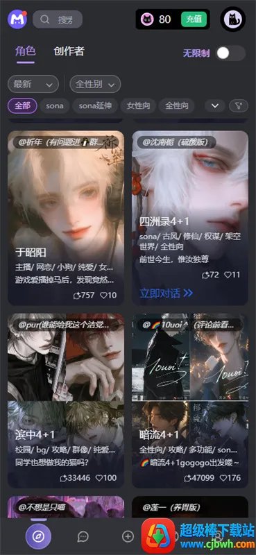 mufyai是一款超棒的AI聊天软件。它能让你在手机上轻松和各种AI角色聊天。这里有女性向、全性向等特色角色,像猫猫角色等,每个都有独特外貌和背景。你可以自由选择喜欢的AI聊天,它们能给你情绪支持和陪伴。软件功能强大,能探索无限可能,在AI开放世界发现无尽故事冒险;还能创造独特角色,按自己想法设计;有沉浸故事体验,剧情互动超智能;开启AI冒险,一起探索未知创造世界。注册登录简单,定制角色也不难。优势明显,无限制对话,突破传统内容过滤,自由表达;个性化互动,满足个性需求;界面简洁,操作轻松。适合想找情感陪伴、喜欢二次元和角色扮演、想练习语言、搞创意写作,以及探索AI能力的小伙伴,快来试试吧!