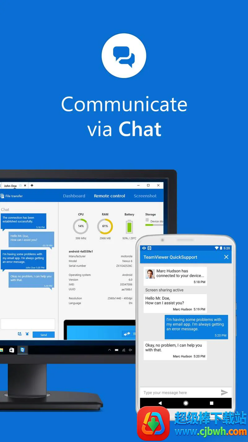 QuickSupport是一款远程控制软件,可让移动设备接受远程技术支持。技术人员能对话、收发文件、查看设备信息等。采用256位AES会话编码保证安全,支持多系统,方便技术人员远程维修设备。