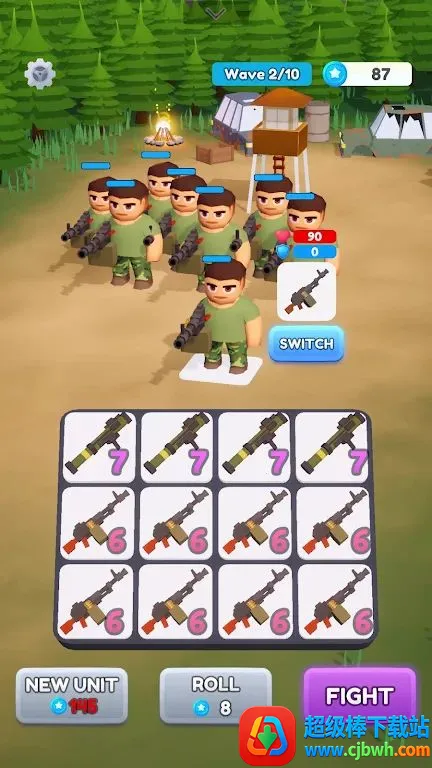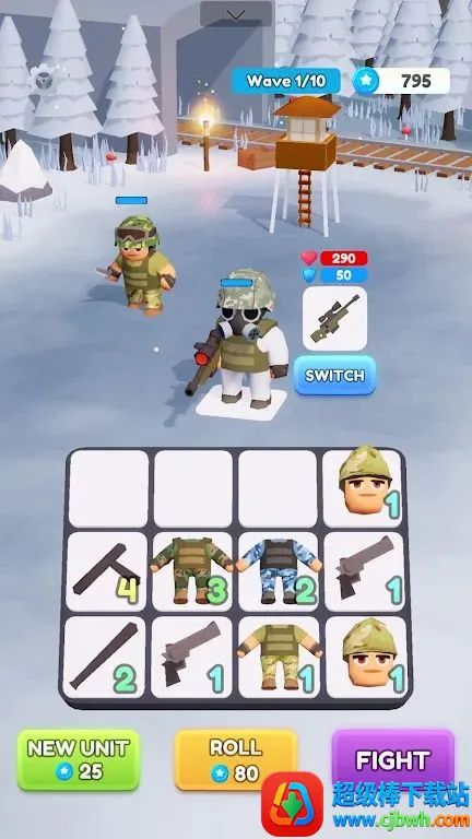 3、能建设与升级塔防小队,为单位配备多级武器和盔甲。