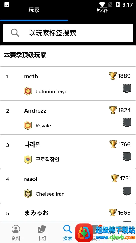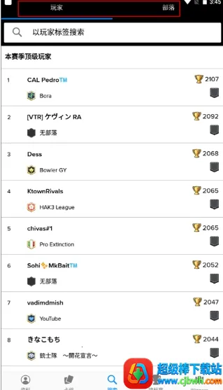 搜索包含玩家和部落两个部分,都是通过标签来找到相对应的成就、等级等信息。