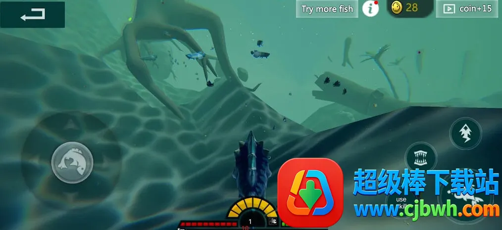 在游戏里,你能扮演各种海洋生物,像小鱼、鲨鱼等。操作超简单,左边控制移动,右边是攻击和技能键。通过猎杀其他小鱼获取食物,就能让自己的角色成长进化。