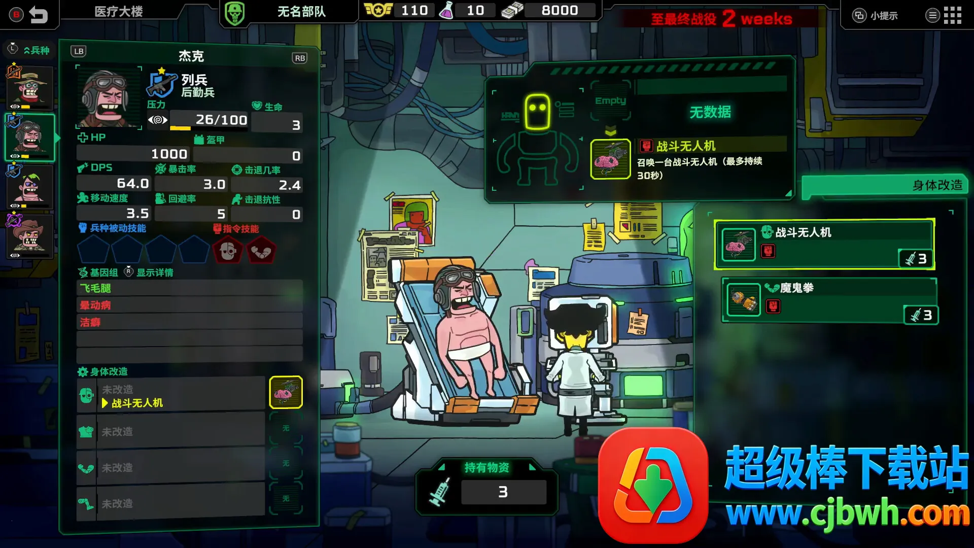 2. 独特战场后方救治环节,受伤士兵能撤回医疗车医治,同时要兼顾前线士兵压力,合理控制战线防止崩溃。