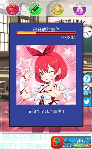《无限告白循环游戏2026官方最新版本》是日式恋爱养成游戏,玩家扮演在校学生,与多位性格各异美少女互动,通过选择触发不同剧情,有超三十种结局,含多种属性维度,玩法丰富,操作简单。