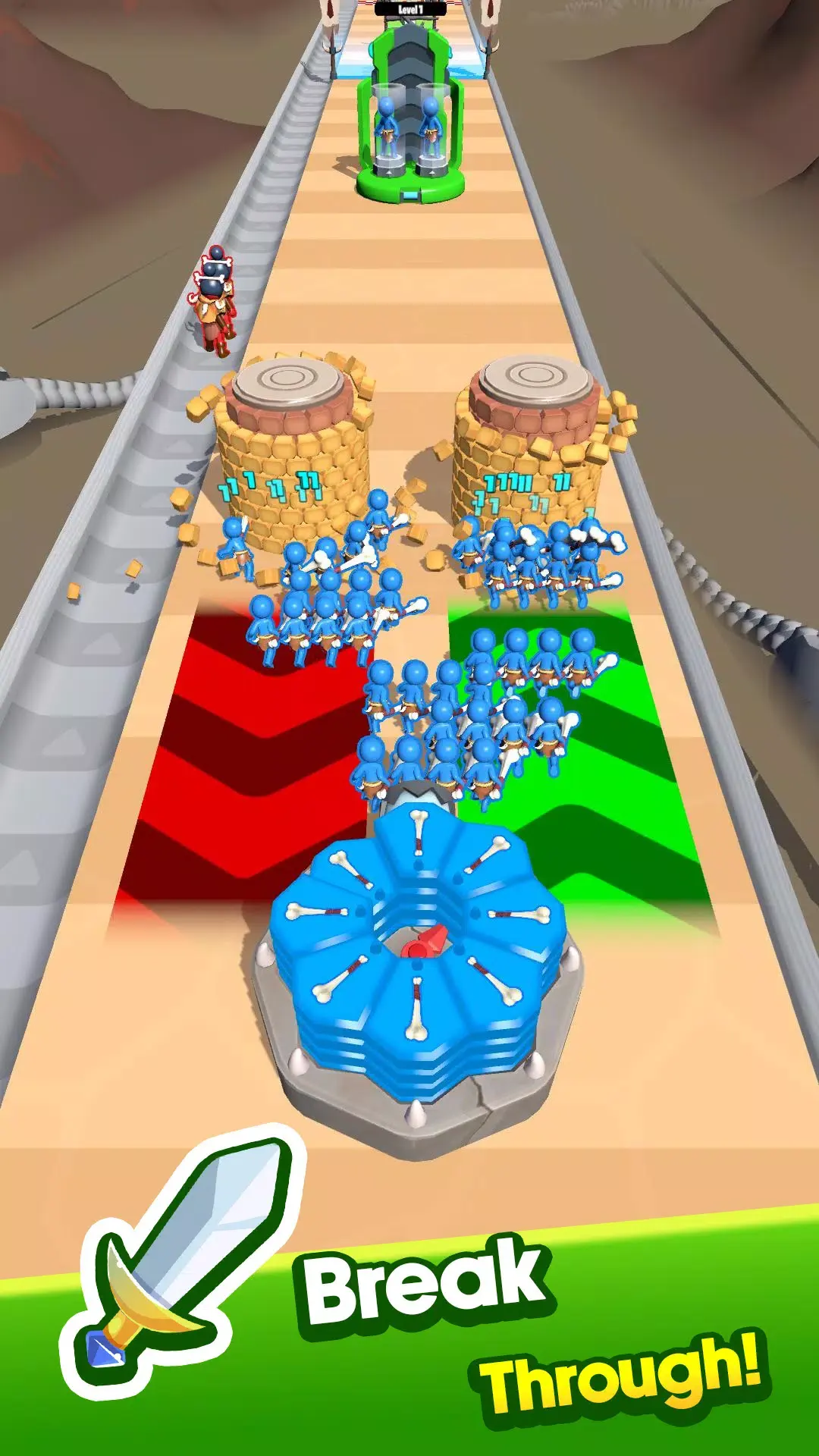 3. 紧张刺激玩法:使用转盘瞄准道路上物体,让独特角色冲向目标,带来紧张刺激的游戏体验。