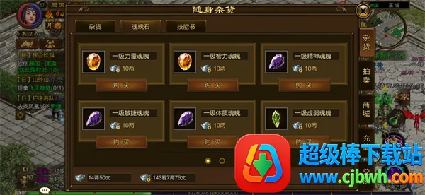 随身商店会出售魂魄石,绑定银两就能购买。根据自己的喜好选择要购买的魂魄石,魂魄石的合成基数为5个,根据你预计达到的魂魄石等级,以及当前的魂魄石剩余数量来考虑具体的购买数量哦。