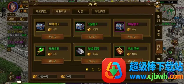 商城有出售升级宝石、硬皮、秘银,只要花费金子就能购买,也可在绑金商店使用绑定金子购买秘银、硬皮。每周商城还会退出限购礼包,可根据自己的策略购买礼包哦!