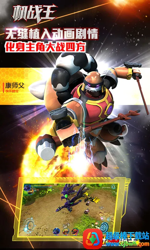 多款经典动画角色齐聚:集合果宝特攻、快乐酷宝等经典动画角色,超三百款造型各异的机甲可供操控,能与童年英雄并肩作战。