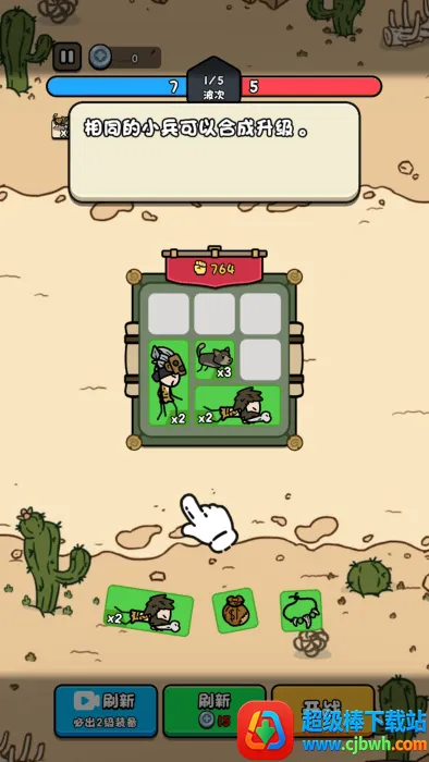 把相同的士兵可以进行合成。
