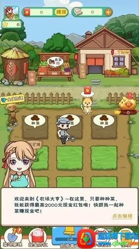 想知道农场大亨能不能提现?答案是能!农场大亨是一款超好玩的休闲模拟经营手游。在游戏里,你能体验当农场主的乐趣,从一片废墟开始,通过种植蔬菜、养殖家禽等,打造自己的农业帝国。这里有精致的3D卡通画面,各种种植规则有趣,作物成熟时间不同。你可以根据季节种时令蔬菜,招待游客赚钱扩建农场,完成任务也能获金币。游戏画风精美,玩法操作简单还有新手指引。更棒的是,玩游戏能直接赚钱提现!比如农场大亨赚钱版,能通过经营直接售卖作物赚钱,完成任务得金币后就能提现。红包版也类似,种植植物得金币还有机会拿现金红包,随心畅玩,轻松赚钱还能提现,快来体验吧!