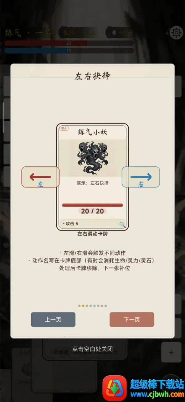 这是一款独特的修仙卡牌游戏。操作简便,单手即可应对随机遭遇,左滑攒气势,右滑放杀招,轻松享受修仙乐趣。核心机制简单却充满策略挑战,贪心抉择考验玩家,稳扎稳打或冒险一搏,结果大不同。剑修与雷法对决激情无限,职业选择多样,卡牌搭配精心策划。从练气到飞升,战力指数级增长,快感十足。每局随机奇遇,妖兽各异,带来全新冒险体验。快来挑战决策能力,踏上无尽修仙旅程,感受其中的生死抉择与惊喜奇遇。