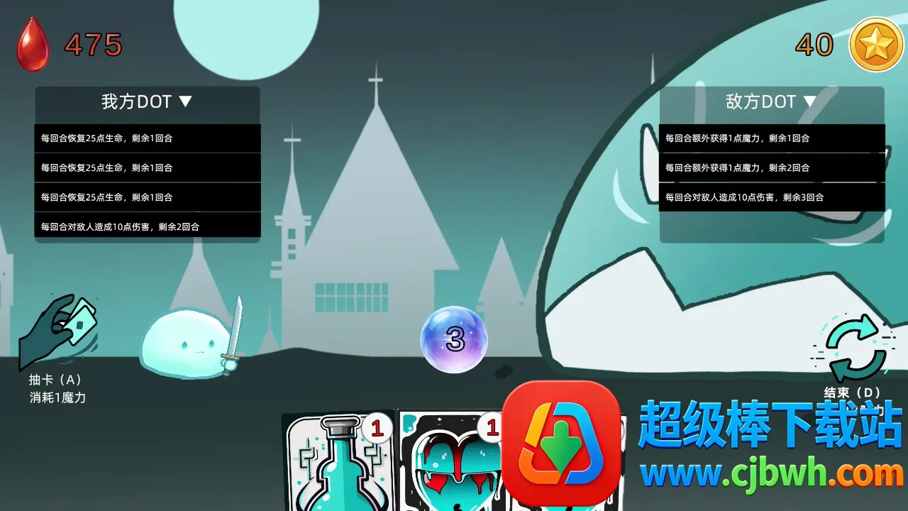 回合制卡牌对决,每回合魔力自动恢复,你与Boss轮流抽牌出牌,展开激烈对抗。