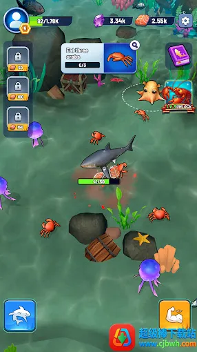 想知道鲨鱼进化中吞噬与成长有着怎样的关系吗?来试试这款海底吞噬成长类手游吧!游戏里,你将从一条小鲨鱼起步,通过不断吞噬各种生物,从食物链底层一路向上攀爬,朝着海洋霸主之位迈进。每吞噬一条鱼,就能获得食物资源,利用这些资源可不断升级,解锁更多技能,让你在海洋中无敌手。比如点击右上角齿轮进入设置界面,能轻松切换成中文。玩法上,拖动屏幕移动鲨鱼吞噬其他鱼类获取资源升级能力,不断吞噬新鱼解锁图鉴拿奖励,完成上方任务也有收获,靠吞噬食物和做任务提升等级。游戏特色满满,吃掉的鱼是进化能量,还有超强BOSS等你挑战,解锁突变改变狩猎方式,更能定制独特皮肤。快来体验鲨鱼进化吞噬与成长带来的畅快解压吧!