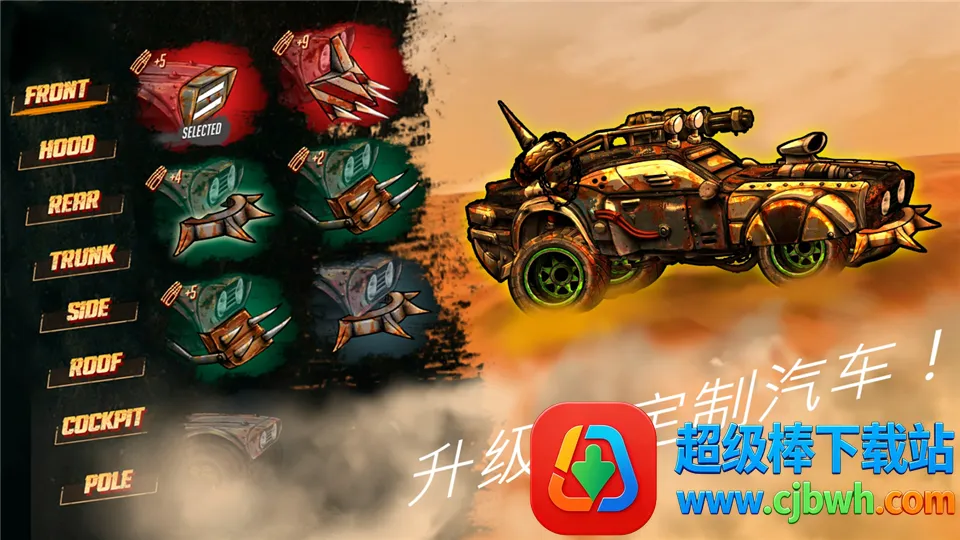 2. 解锁收集多种强大末世赛车,配备强力枪支,掌握每辆车独特武器、能力,应对各种路况。