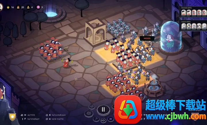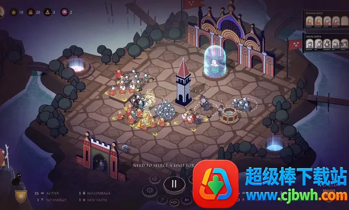 独特的战斗系统:战斗是智慧与策略的比拼,信徒参与小规模战斗,能解锁并招募16种特色单位,利用技能与地形优势排兵布阵,体验即时战略与自走棋玩法。