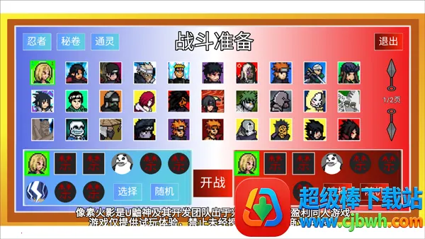 1、打开像素火影宇宙服重启版,点击忍术对战;