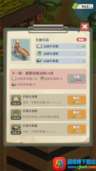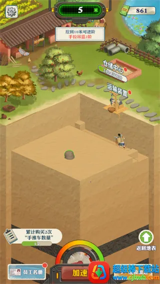 经营与养成:升级装备提升挖掘效率,升级员工提高挖掘速度,解锁运输队和初级仓库,还能通过完成任务获得大量钞票,不断发展壮大产业规模。