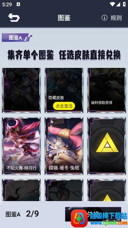 3、点击“图鉴”,浏览可兑换皮肤;进入皮肤详情页,点击“立即领取”,消耗对应金币完成兑换。