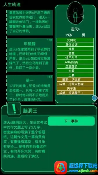 2. **多样的人生轨迹**:玩家可以从各种奇特的开局开始,如婴儿、机器人、失忆者、身怀超能力的人等。每次给出的选项看似平常简单,却决定一生走向。玩家还会遭遇突发游戏事件,如莫名死亡、诈骗电话等,使游戏乐趣十足。在这里,玩家能挣脱现实枷锁,体验截然不同的人生,无论悲喜,都将成为难忘的记忆。