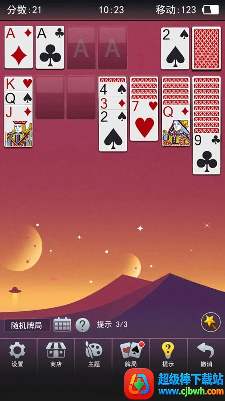 2. 具备贴心辅助功能,陷入僵局时提示、撤销和洗牌等操作助你取得胜利。