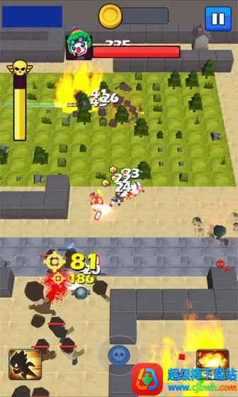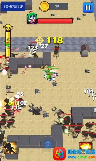 1、卡通风格场景:享受独特战斗体验,在色彩丰富的场景中提升能力属性,击败僵尸与敌人。