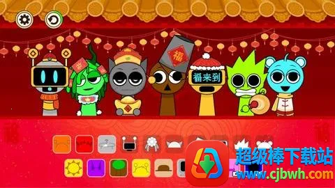 嘿,朋友们!今天给大家介绍一款超有趣的节奏盒子新年模组。它在原版基础上加入了超多新年元素,背景换成喜庆的红色,还有鞭炮、红包、灯笼等,人物也都换上了新装扮。这里有带耳罩的奥伦、拿“新年快乐”的瑞迪等一系列特色角色。玩法简单,主界面上方是角色,下方是道具,直接把道具拖到角色身上就能发出音乐。收录了经典新年歌曲和现代流行音乐,还有丰富隐藏彩蛋,触发后有热闹动态画面。入门指南和新手教程都很贴心,教你轻松上手。比如把带新年元素的音效图标拖到人物身上混音,完成赋音后就能演奏,长按人物可单独演奏,单击则静音。它能让你感受到浓浓的春节氛围,解锁有趣动态画面,聆听新年专属音乐,满足你对新年欢乐节奏的需求,快来体验吧!