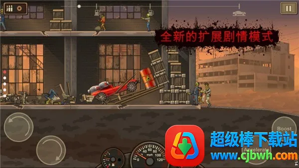 **多种游戏模式**:游戏拥有故事模式、自由驾驶任务模式和探索模式等。不同模式规则玩法各异,像自由模式油量无限,能选任意汽车挑战任意关卡;任务模式需完成如飞跃500米、碾压一定数量僵尸等目标;探索模式要在地图收集指定物品。